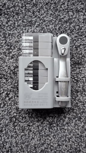 Jeg havde aldrig brugt en præcisionsskruetrækker før, men denne er super enkel og intuitiv. Bitsene kan nemt skiftes, og den fylder ikke noget.