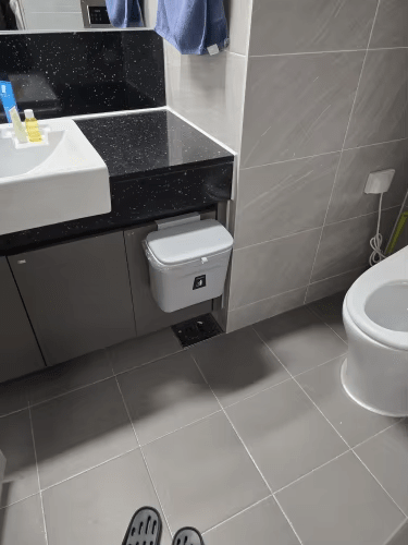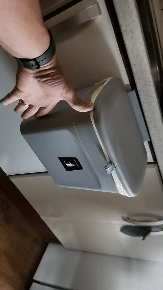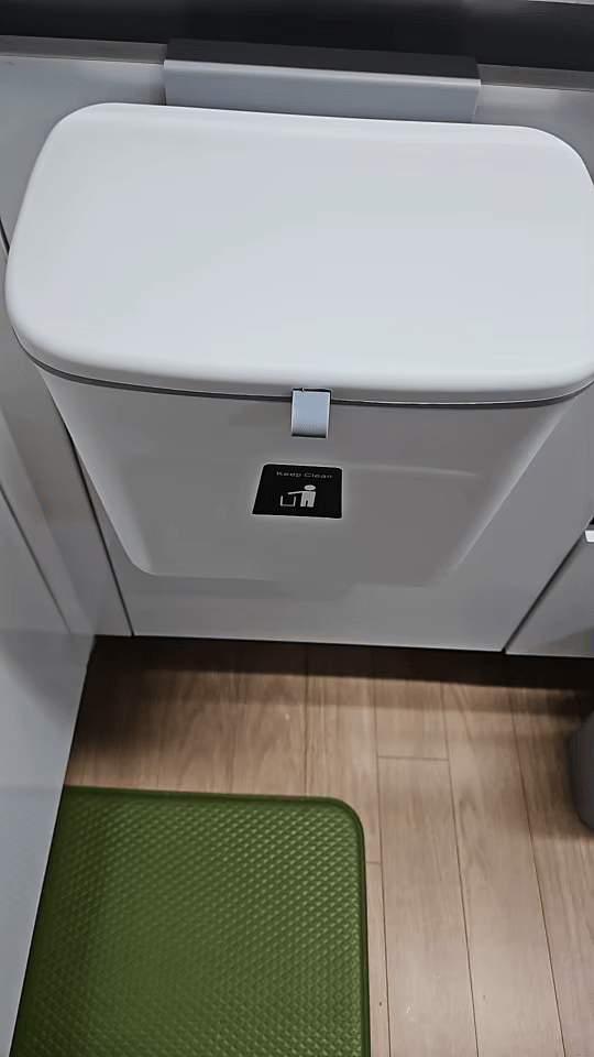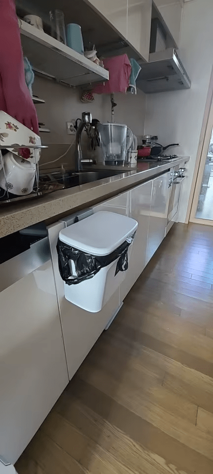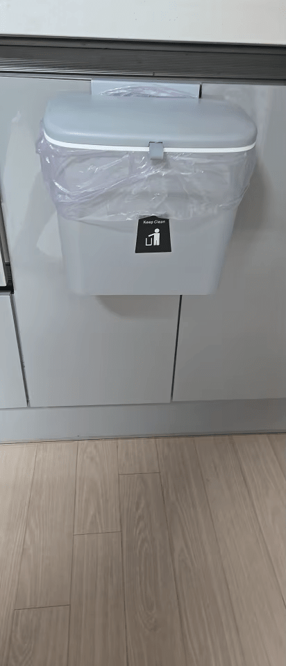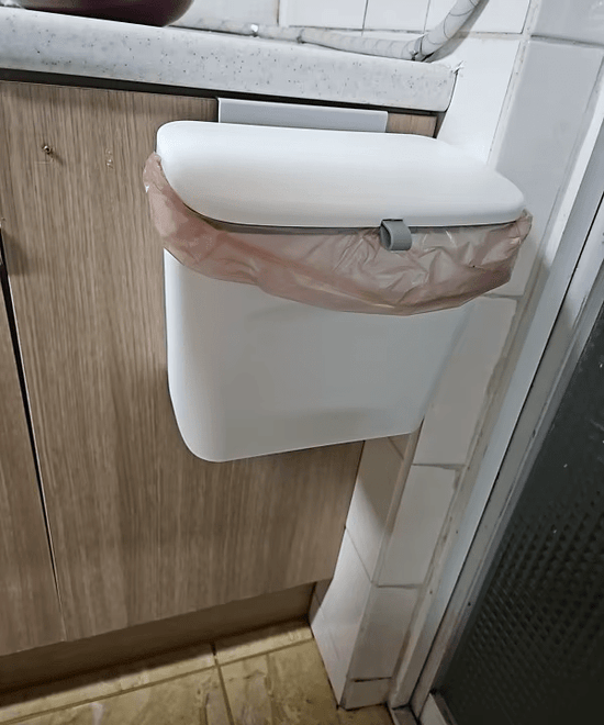 The bin is designed to fit cupboard doors with a maximum thickness of 0.98 inch (2.5 cm).