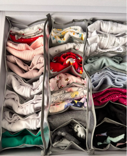 Ces boîtes sont idéales pour organiser vos sous-vêtements, chaussettes, leggings, t-shirts, pyjamas ou pantalons fins. Chaque catégorie a son espace dédié selon vos envies.