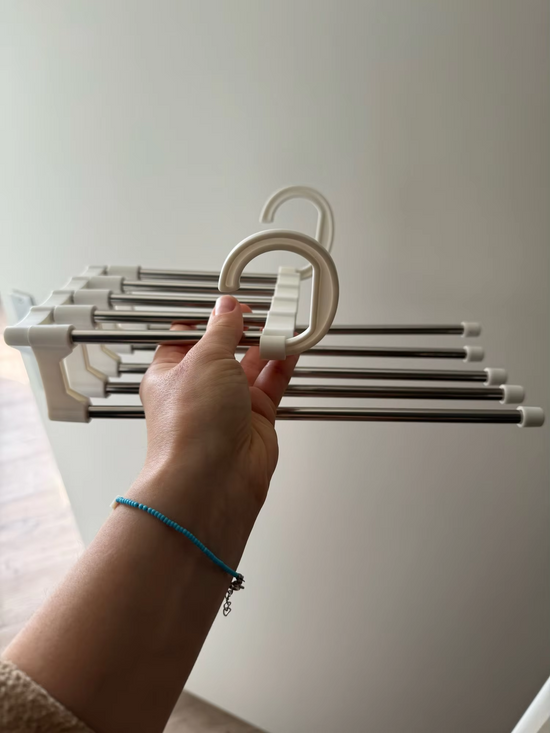 Chaque niveau dispose d’une barre antidérapante pour maintenir les vêtements en place.