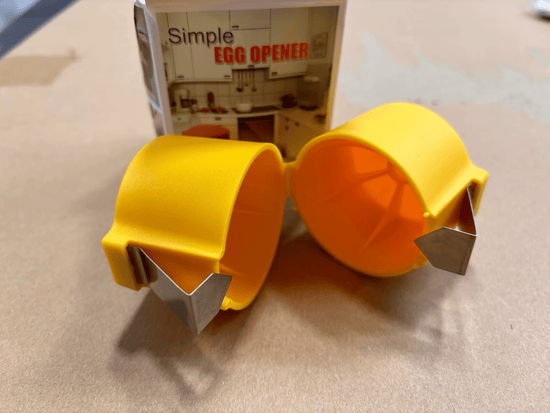 Den har funnet sin plass på kjøkkenet mitt. Ikke mer stress med å åpne et egg pent.