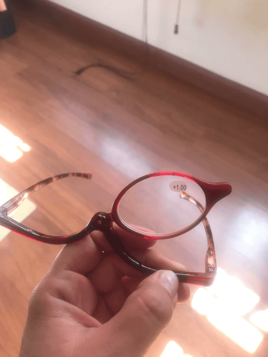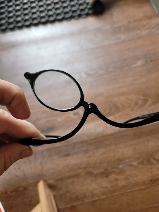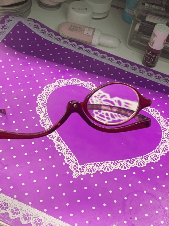 Linsen kan vippes fra den ene siden til den andre for å holde ett øye fritt under påføring av sminke.