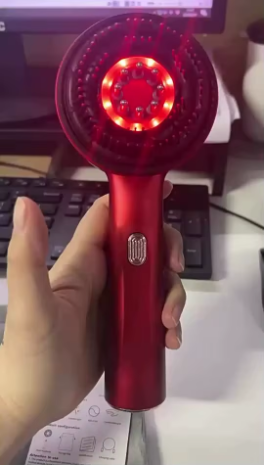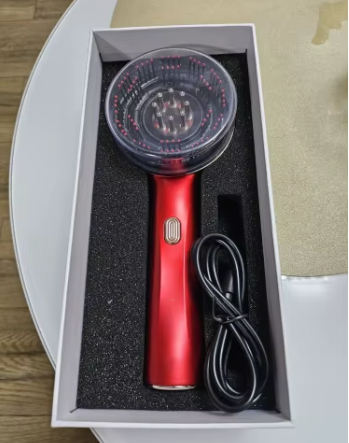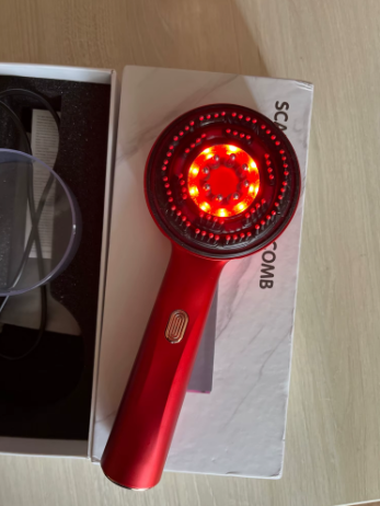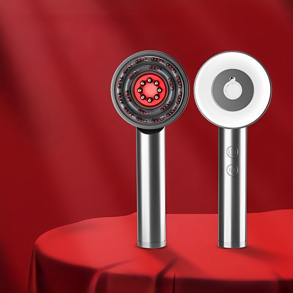 Den elektriska massagekammen stimulerar varsamt hårbotten med hjälp av rött ljus, främjar blodcirkulationen och håråterväxt för tjockare och friskare hår.